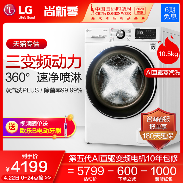 天猫LG官方旗舰店当前售价5799元,下单立减600元,可联系客服的1000元装修红包,实际到手价4199元,好价可入