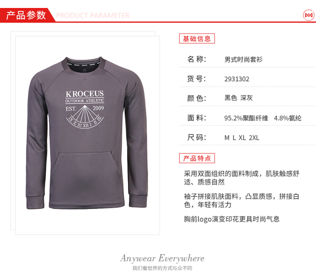 在款式上,合身版型,套头款的卫衣设计,搭配有经典袋鼠兜,插肩袖,不影响肩膀的灵活性,胸前是展现Logo。