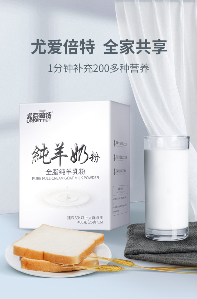 这款尤爱倍特 全脂纯山羊奶粉,是成人奶粉,选用新鲜优质奶源,从牧场到工厂仅用2小时,全程低温锁鲜,让鲜奶尽可能少与空气接触,保持羊奶的新鲜和营养,不让羊奶受母羊“污染”,拒绝变膻。