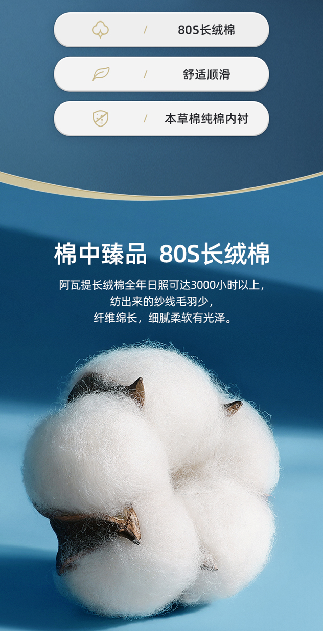 天猫金利来荣洲专卖店99元,可领30元优惠券,实付69元到手,是正价189元的3.7折;80S长绒棉 天然本草棉 AAA级抑菌。