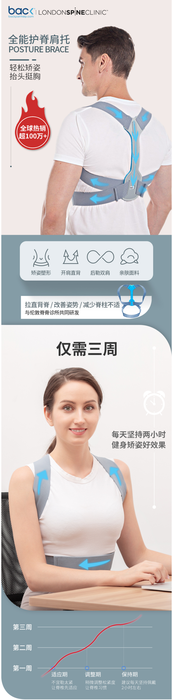 天猫back居家日用旗舰店299元,可领160元优惠券,实付139元到手。英国Back驼背矫正带, 「官网地址」在此,是Back与英国伦敦脊骨诊所(The London Spine Clinic)共同研发,成人、儿童通用。