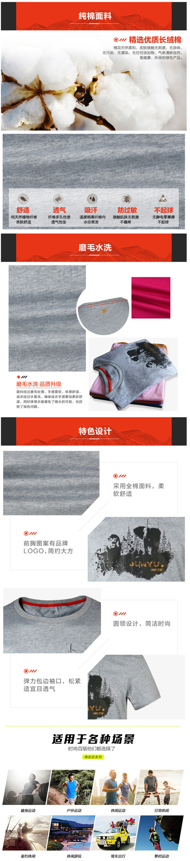 这款T恤选用新疆长绒棉,面料未经过化学处理,留有纯棉表面绒绒的质感,手感更柔软;在版型和款式上,男直筒/女修身,立体剪裁,胸前有印花,袖口是弹力包边,后领是撞色防变形捆边,保证领口不松懈变形。