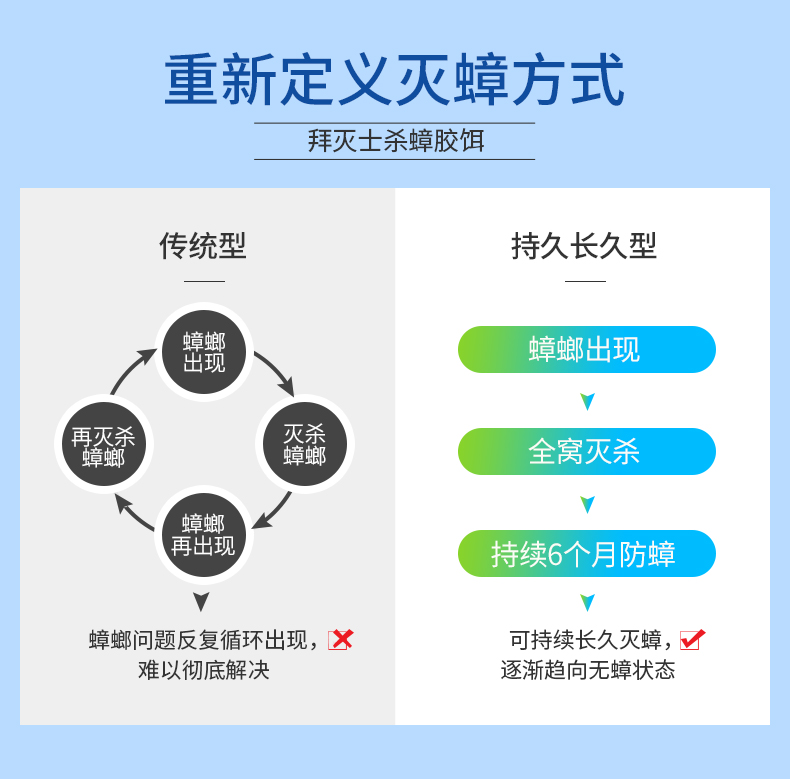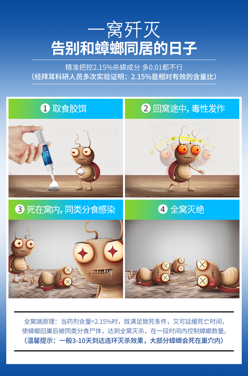 这款堪称灭蟑神器,一只蟑螂中毒,可以传染给其他蟑螂,做到一窝端,家有蟑螂的网 友可以关注一下。并且无抗药性,蟑螂死亡率99.9%,一次用药,可持续防治半年。