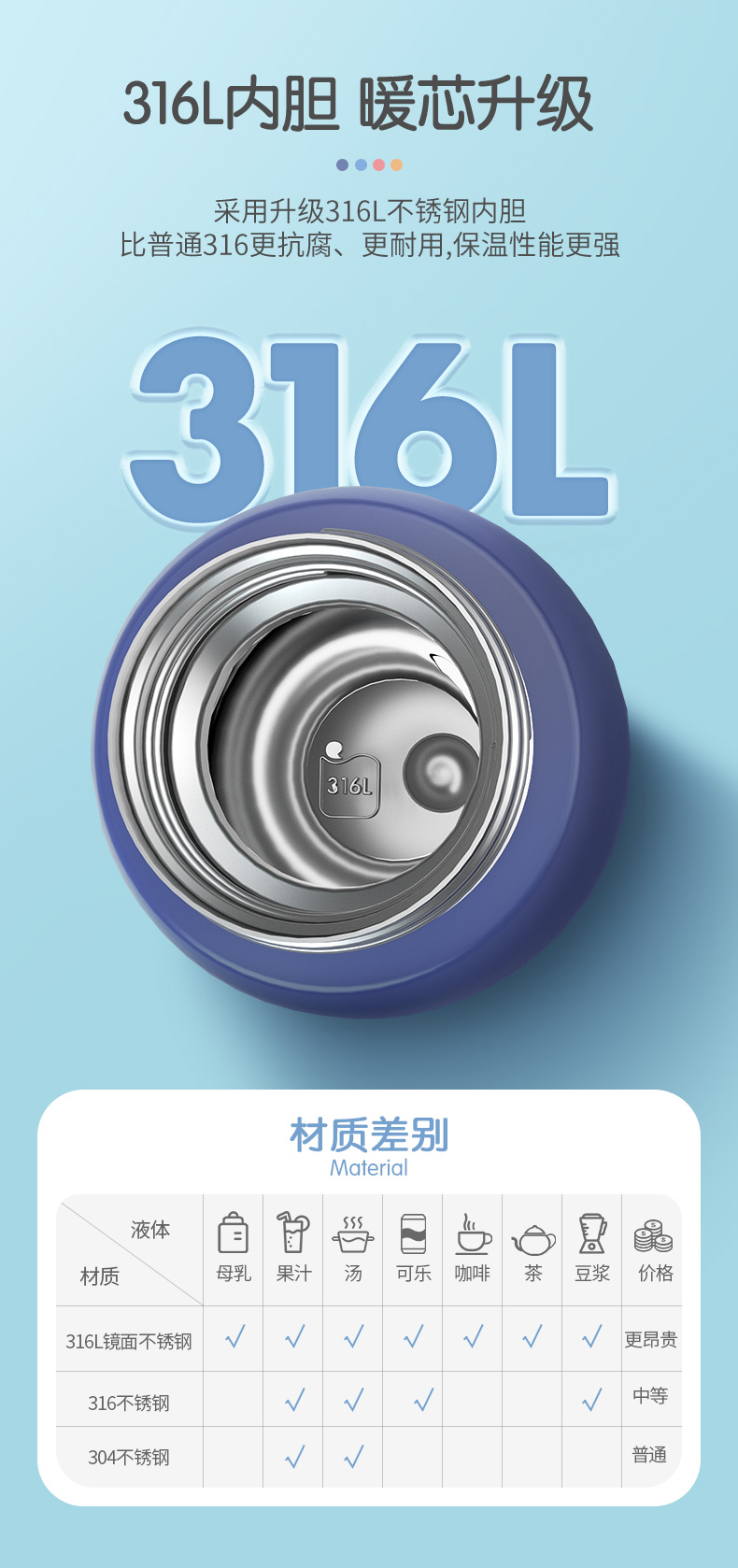 天猫auldey奥迪双钻旗舰店159元,可领110元优惠券,实付49元到手,4款印花可选,升级医用316不锈钢内胆,相比304不锈钢耐腐蚀更强,安全有保障。杯盖为食品级PP材质,内设排气孔,平衡内外气压,开盖防喷溅;食品级硅胶材质,不含双酚A,耐啃咬,对人体健康无害,保证儿童用水安全。