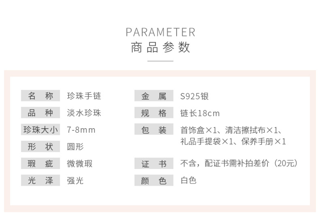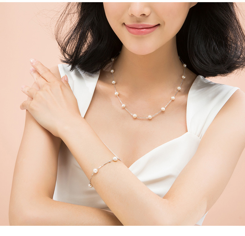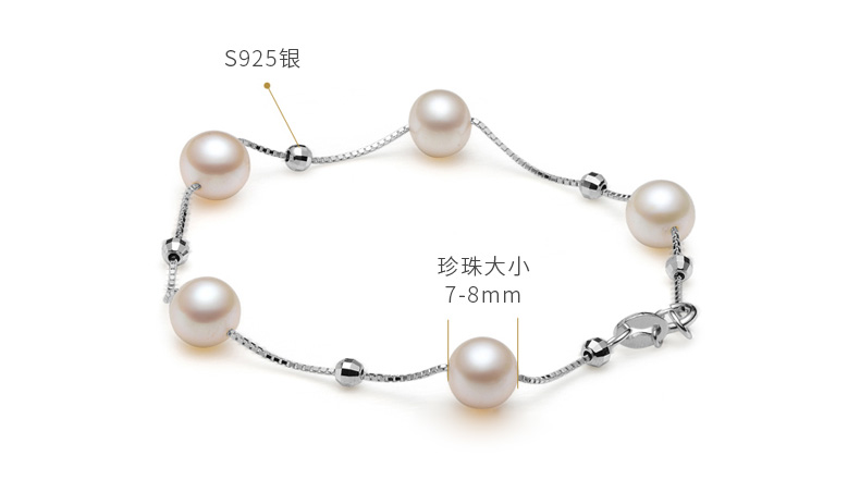 =94.2元 到手价,母亲节好礼。这款手链采用S925银材质,不易过敏,不易褪色;拥有优雅气质的珍珠和令人心动的满天星设计,交织成这个梦幻系列。间隔有序的珍珠仿佛沉浸在另一种夏日的优雅和风情。珍珠大小约为6-7mm,搭配牢固盒子银链,链长约18cm。