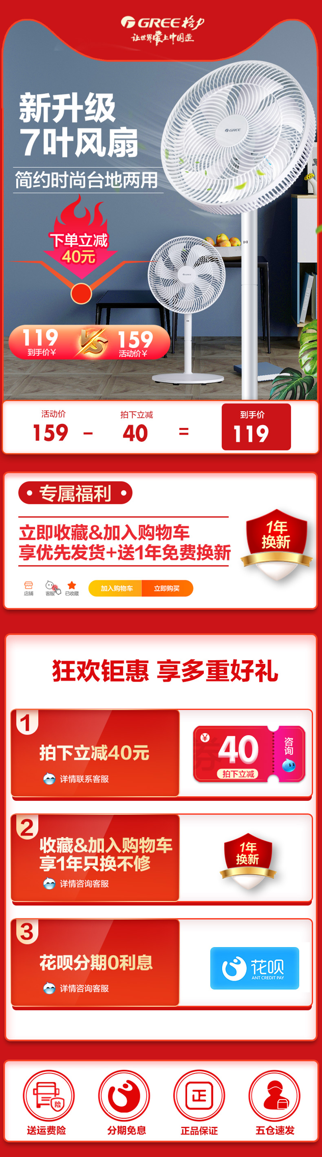 天猫格力威铭专卖店,27-28日天猫超来电,¥159元 来电价,-40元 下单立减,-20元优惠券,=99元 到手价,这款格力 静音电风扇,7叶仿生扇叶设计,相比3叶和5叶的送风更均匀、稳定、柔和;采用50w紫铜4S电机,节能低耗,工作时噪音较小,更稳定,使用寿命更长。