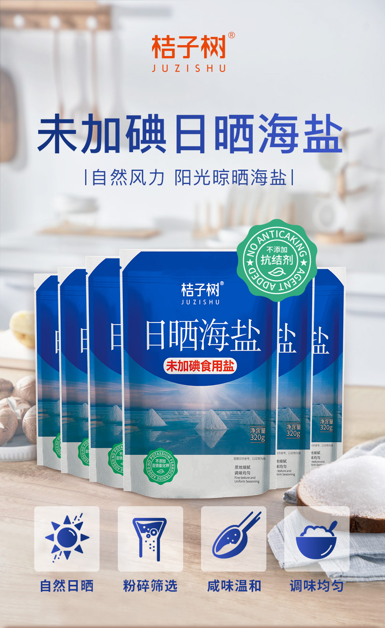 无碘日晒海盐 ,富含多种微量元素,精选颗粒纯净、品相优质的海盐原料多层工艺净化、去除多余杂质,无抗结剂。独特古法蒸制提炼结晶工艺,充分锁住海盐的鲜美。规格:320g*6袋。