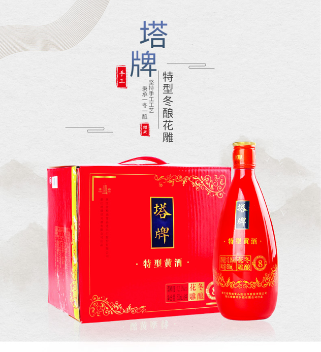 这款塔牌黄酒,传统手工酿造工艺,非物质文化遗产,八年陈酿,江南糯米纯手工酿造,采用冬季鉴湖源头水入酒,酒质清澈,入口顺滑柔和,甘甜饱满,回味无穷。自饮送礼都可以。