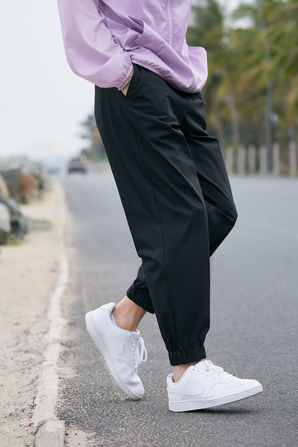 在款式上,宽松版型,9分裤长,休闲风,束脚裤脚,松紧+抽绳的腰头,穿脱也方便。
