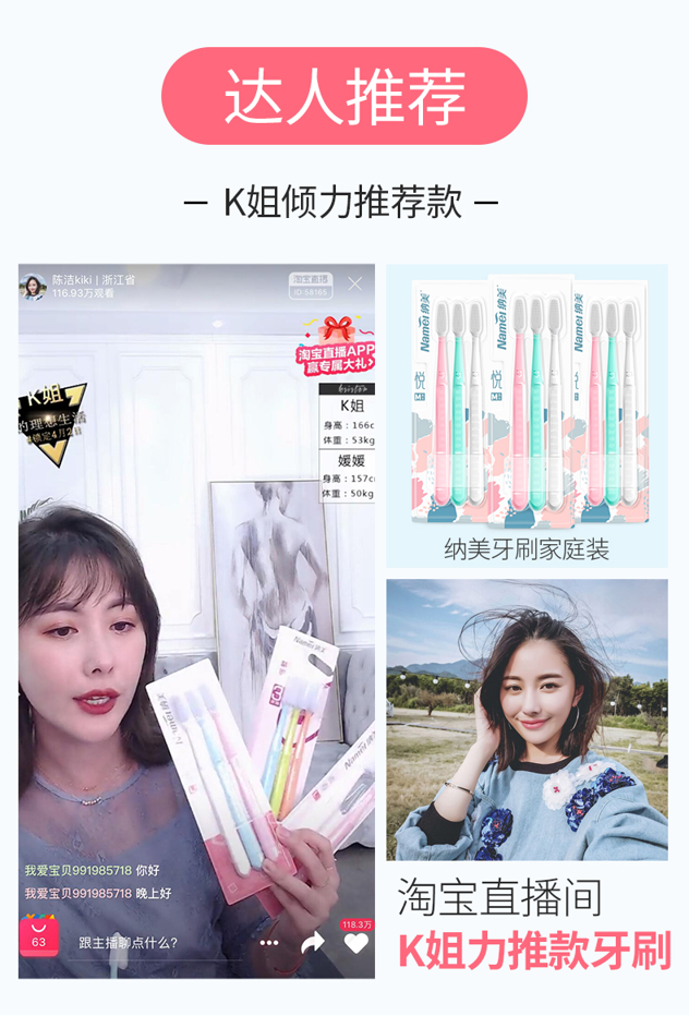 这款纳美 纳米软毛成人牙刷,刷头刷毛是一体成型,经过第三方机构检测,大肠杆菌抗菌率>90%、金黄色葡萄球菌抗菌率>90%,避免细菌二次感染。