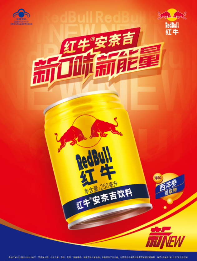 Red Bull 红牛是全球首先推出且被人熟知的的能量饮品之一。内含水、糖、咖啡因、muco-纤维醇和维生素B等成分的“滋补性饮料”,特别添加西洋参提取物,补气益脑,提神抗疲劳,熬夜加班、长途驾驶、运动健身补充能量,