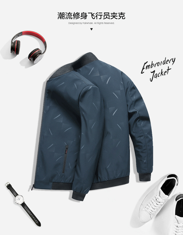 棒球夹克式设计,特色小领口、下摆收紧,休闲时尚。精选优质面料,光泽好,质感强,彰显男性魅力。罗纹领口与袖口设计,水洗不易变形,同时防止灌风,御寒保暖。简约纯色款式,无论日常休闲,还是商务场合,都适合穿。