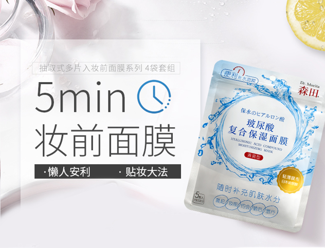 森田玻尿酸复合保湿面膜,主打保湿和滋润,抽取式包装,便利快捷,只敷5分钟,水润好气色。属于清爽型补水,每天都可以使用,肌肤无负担。
