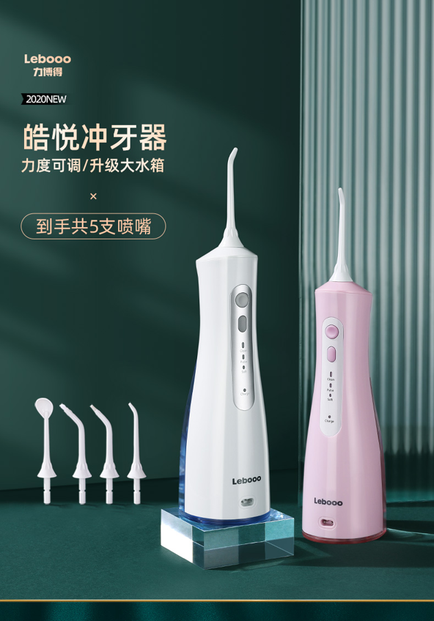 这款 LEBOND 力博得便携式冲牙器,4.9高分好评,专业牙医推荐,1400次/分钟高压脉冲水流,有效清洁牙结石,清洁、脉冲、轻柔3种模式,2挡力度可调,4小时充电可续航2周,带充电指示灯,安全便携,200ml大水箱可拆卸,方便卫生,IPX7级防水,可直接冲洗。