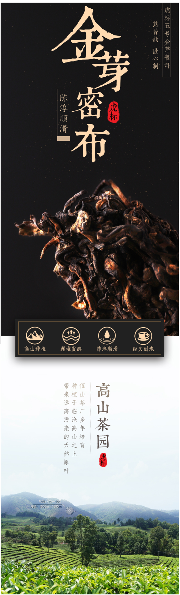 云南七子饼茶亦称“圆饼”,云南一定区域内的大叶种晒青毛茶为原料,适度发酵,经高温蒸压而成。具有滋味醇厚、回甘生津、经久耐泡的特点。保存于适宜的环境下越陈越香。而金芽是普洱茶(熟茶)中级别最高的,它是经精心挑选的均匀单芽芽头,因发酵过的芽头颜色呈金黄色所以称之为“金芽”。