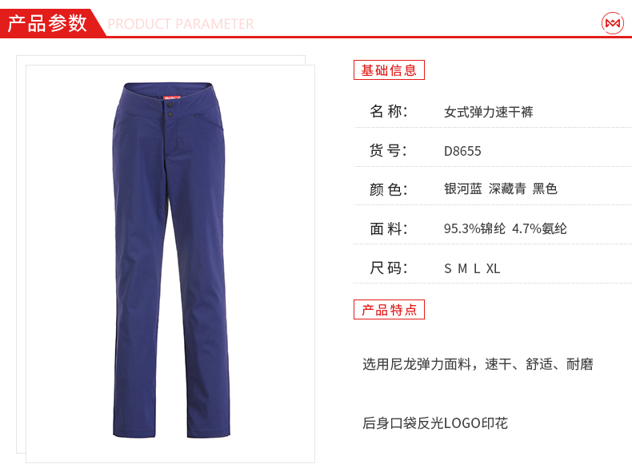 面料中还混有4.7%氨纶,使面料具有四向弹力,即上下左右都拥有弹性,伸展性好还抗皱,在腿部活动时没有拉扯紧绷感,具有良好的穿着体验。