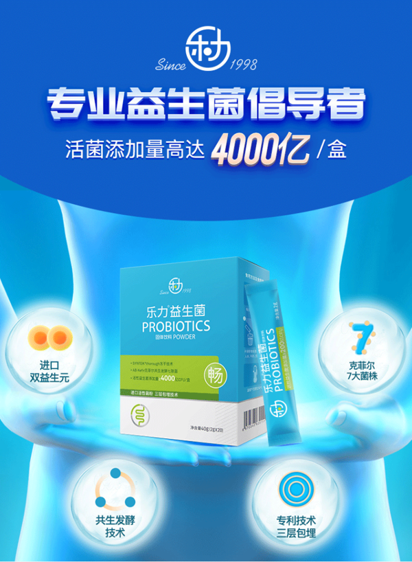 选用克菲尔7大菌株,进口双益生元,共生发酵技术。采用多层包埋技术,使益生菌保持活性,不需冷藏,随时给身体补充益生菌,主要作用是促进肠胃内有益菌繁殖,调理肠胃,缓解便秘、腹泻、腹胀、不消化等问题,保卫肠道健康。