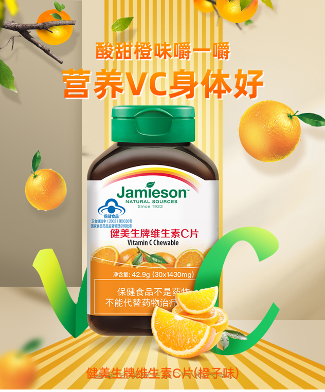 天猫jamieson健美生旗舰店79元,拍2瓶158元,-89元 拍2件立减-30元优惠券,=39元到手2瓶,健美生牌维生素C咀嚼片,加拿大原装进口,采用干压制片、保留维C的活性,不添加淀粉,保留口感橘子味香浓,酸酸甜甜,维生素C是一种抗氧化剂,具有很强的抗氧化功能,有增强免疫力,预防感冒,抗炎症,促进伤口愈合,促进胶原蛋白合成,美白肌肤等多种功效。