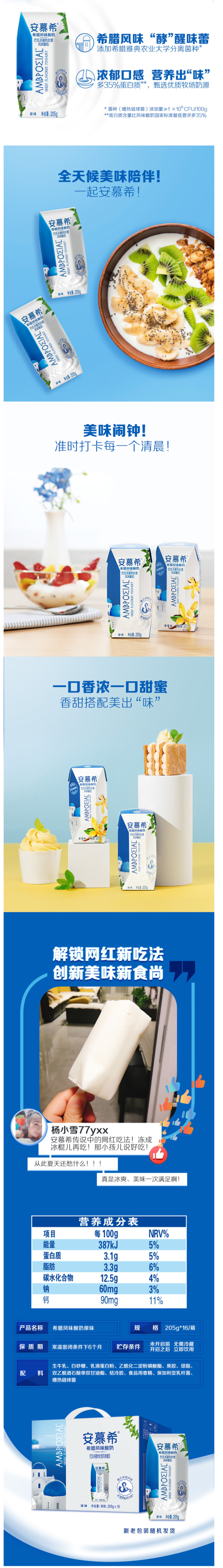 安慕希酸奶定位高端,是内蒙古伊利实业集团股份有限公司旗下主打品牌。采用伊利自有牧场生牛乳发酵,不含防腐剂、甜味剂及人工色素。
