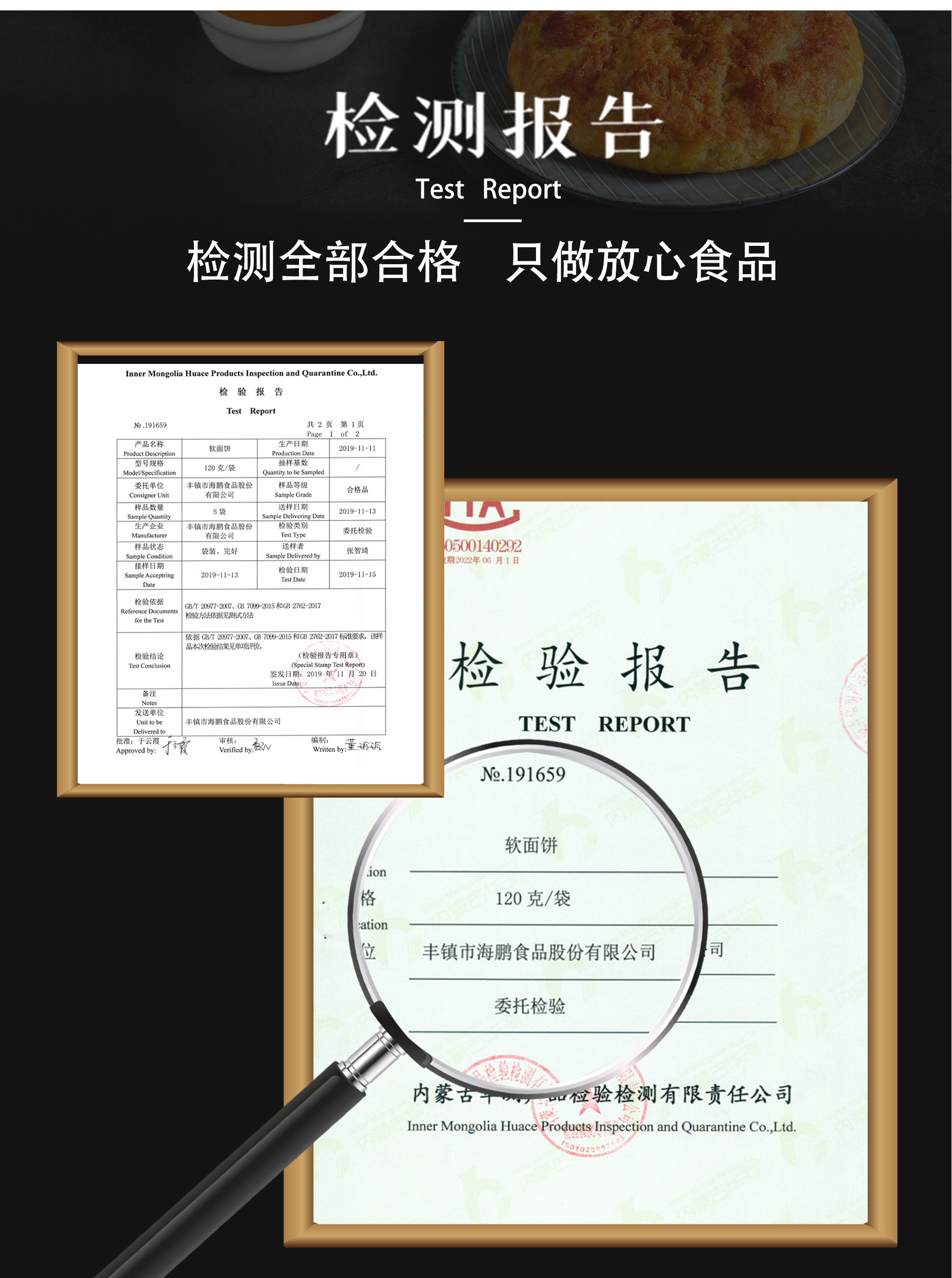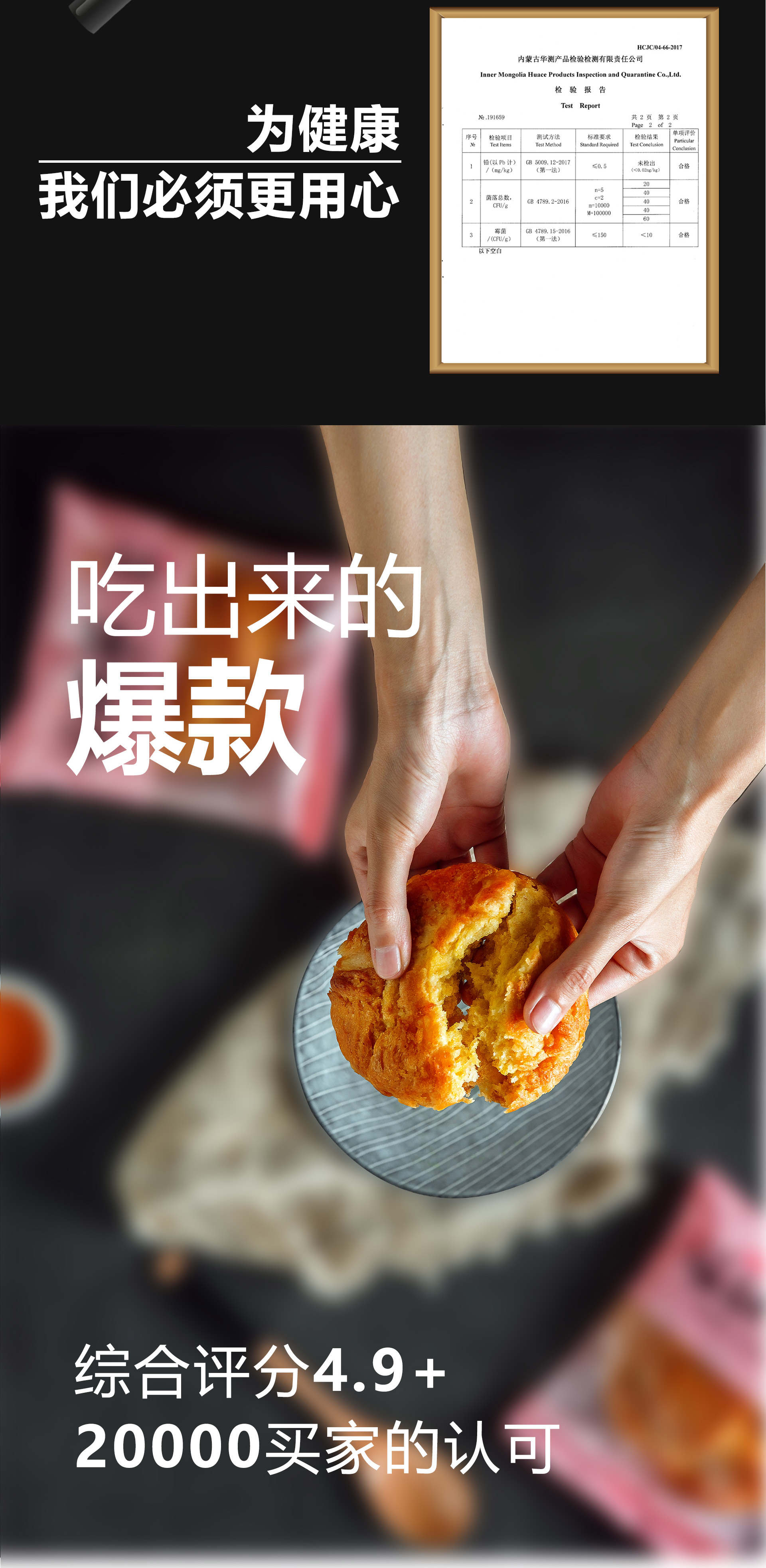这款海鹏丰镇月饼是内蒙古丰镇市原产,创始人是内蒙古的非物质文化传承人,秉承260年的古法制作,使用内蒙特产的胡麻油、面粉、奶粉和糖,除此之外不添加任何化学添加剂,香甜松软,具有柔软的绵密感和胡麻油的香气,内里无馅,是地道的西北地区风味。