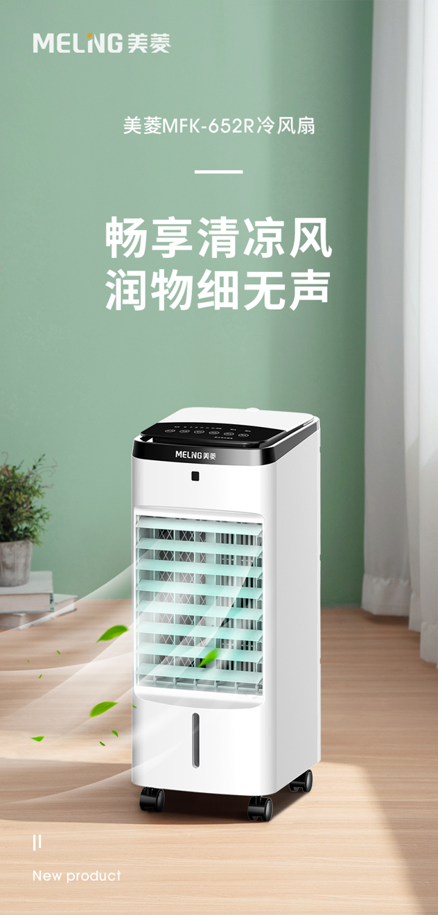 美菱 空调扇使用涡轮贯穿技术,三档风速可调,适合小居室使用,清凉度适中,优质植物纤维水帘,可阻碍过滤空气中的毛发、尘埃等异物,让出风更干净,3L大容量可视水箱设计,一次加水长久使用。显示面板功能齐全,简单易懂方便操作。