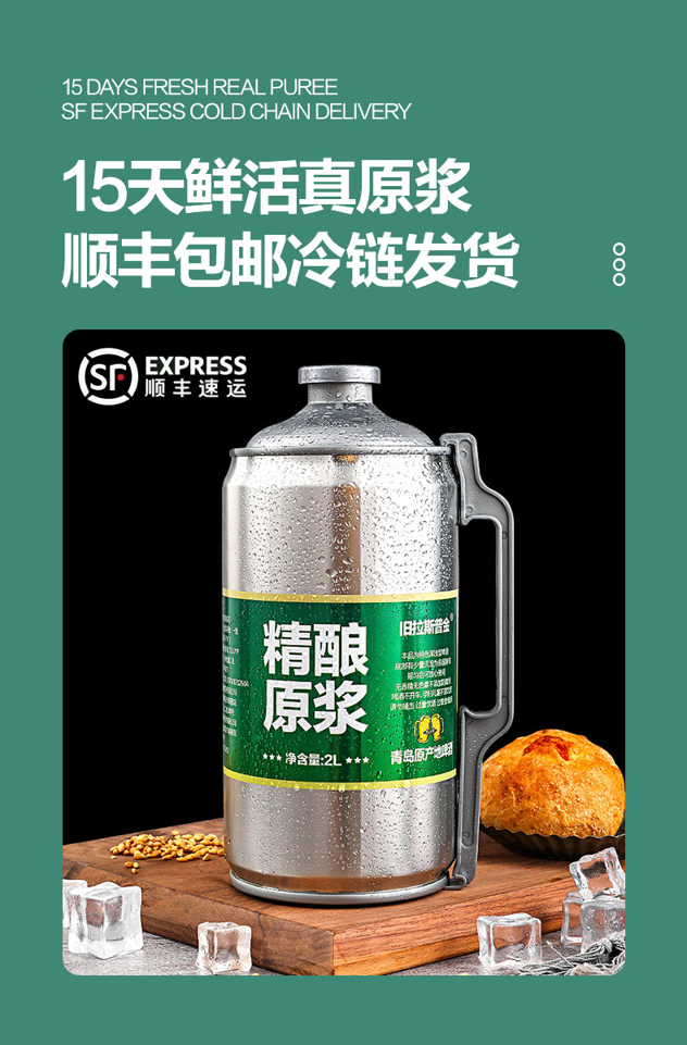 天猫旧拉斯普金旗舰店29.8元,可领5元优惠券,实付24.8元到手,当天下单当天灌装顺丰包邮发货,保温泡沫箱加冰袋,可以喝到新鲜的精酿原浆啤酒!