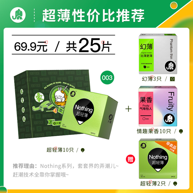 此前大家想尝试003的轻薄只能购买冈本等外国品牌,如今,国产大象003已经发展到第三代了,更润、更薄、更贴合肌肤,而且性价比高,比国外的003便宜一倍多。