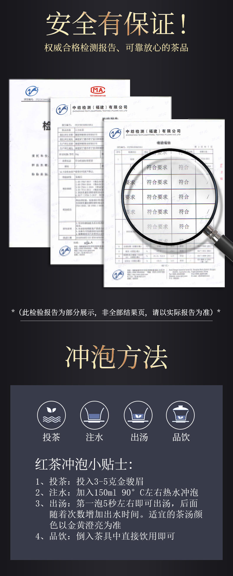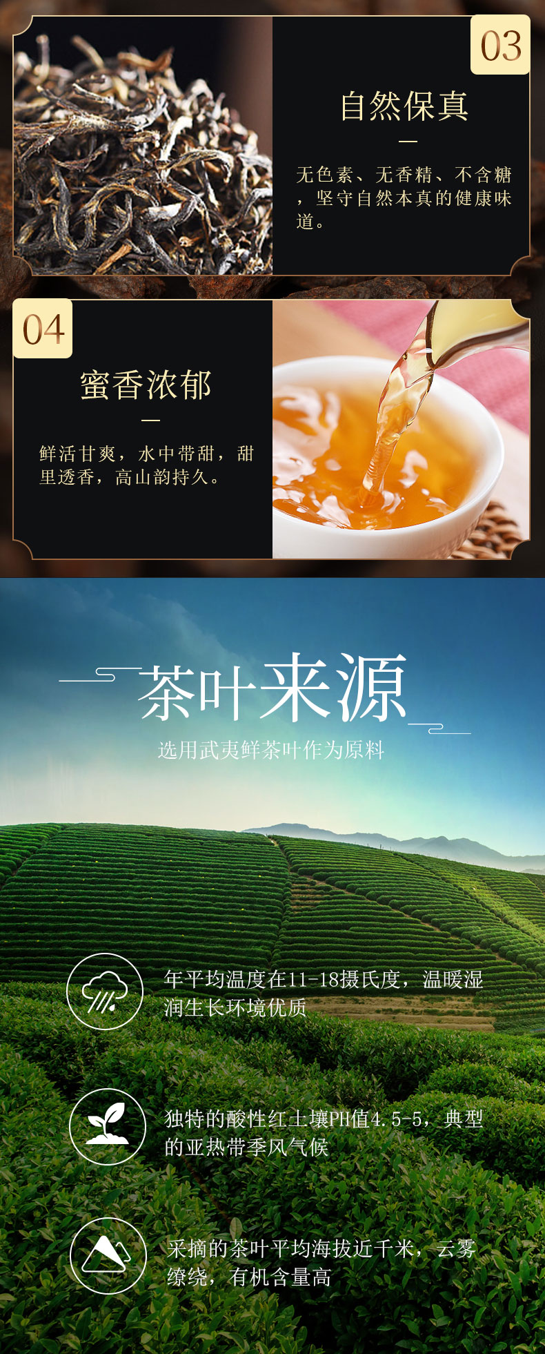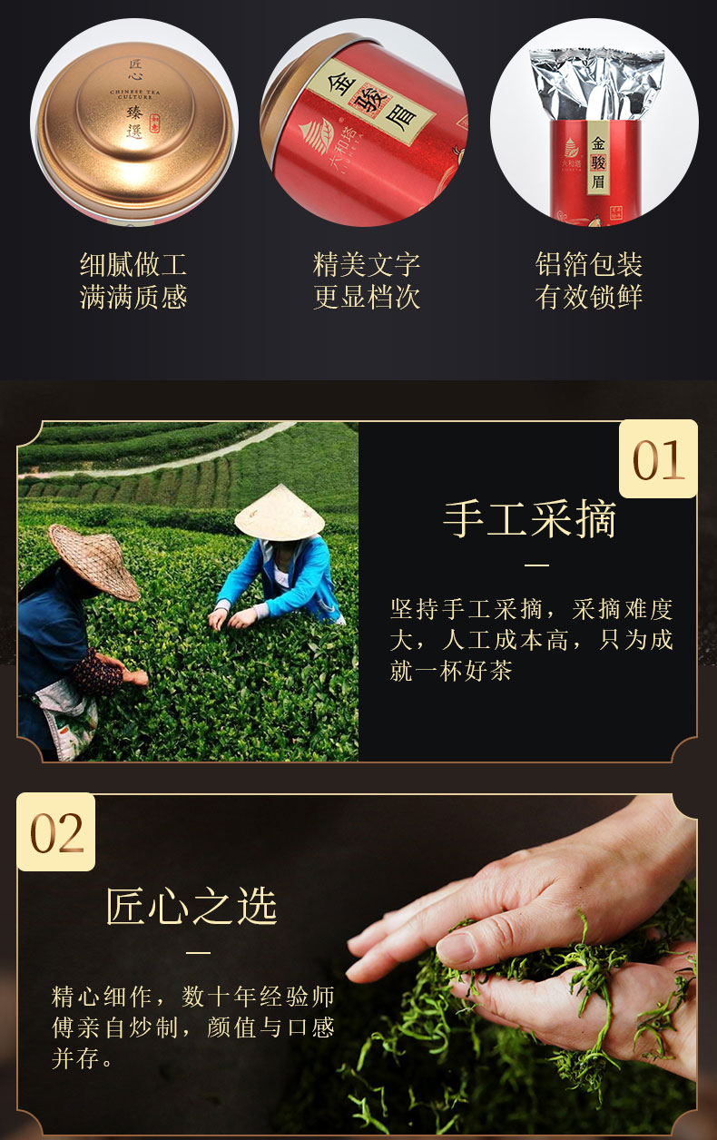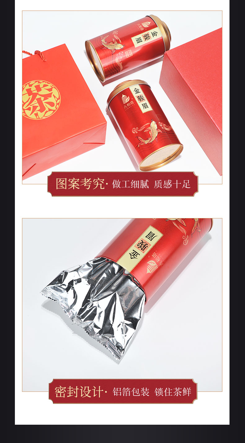 福建武夷山原产地,金骏眉红茶,坚持手工采摘,数十年经验实付炒制,精选一级品质,干茶条索均匀完整,紧细俊秀、黑黄相间、金毫满披,无色素。无香精、不含糖,茶汤橙黄剔透、口感鲜活干爽、甜里透香、蜜香浓郁,茶气十足,数泡仍有余香。
