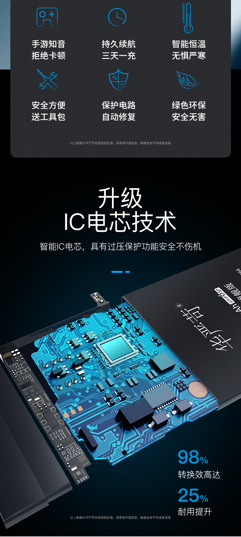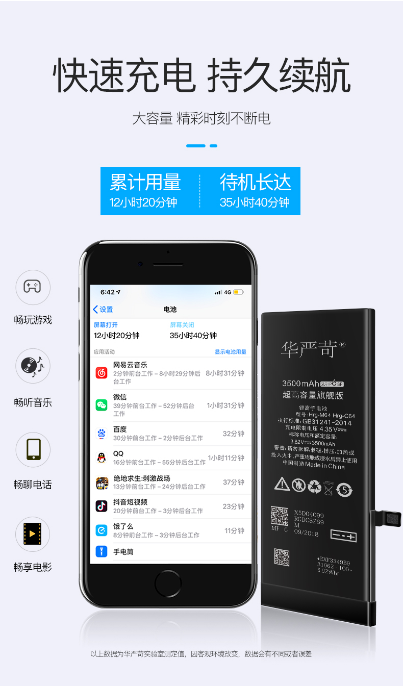 再就是华严苛有大容量电池,比苹果原厂多出20%电量,比苹果原置电池更耐用,不但电量满血复活,大容量电池也让手机CPU保持比较高的品频率。