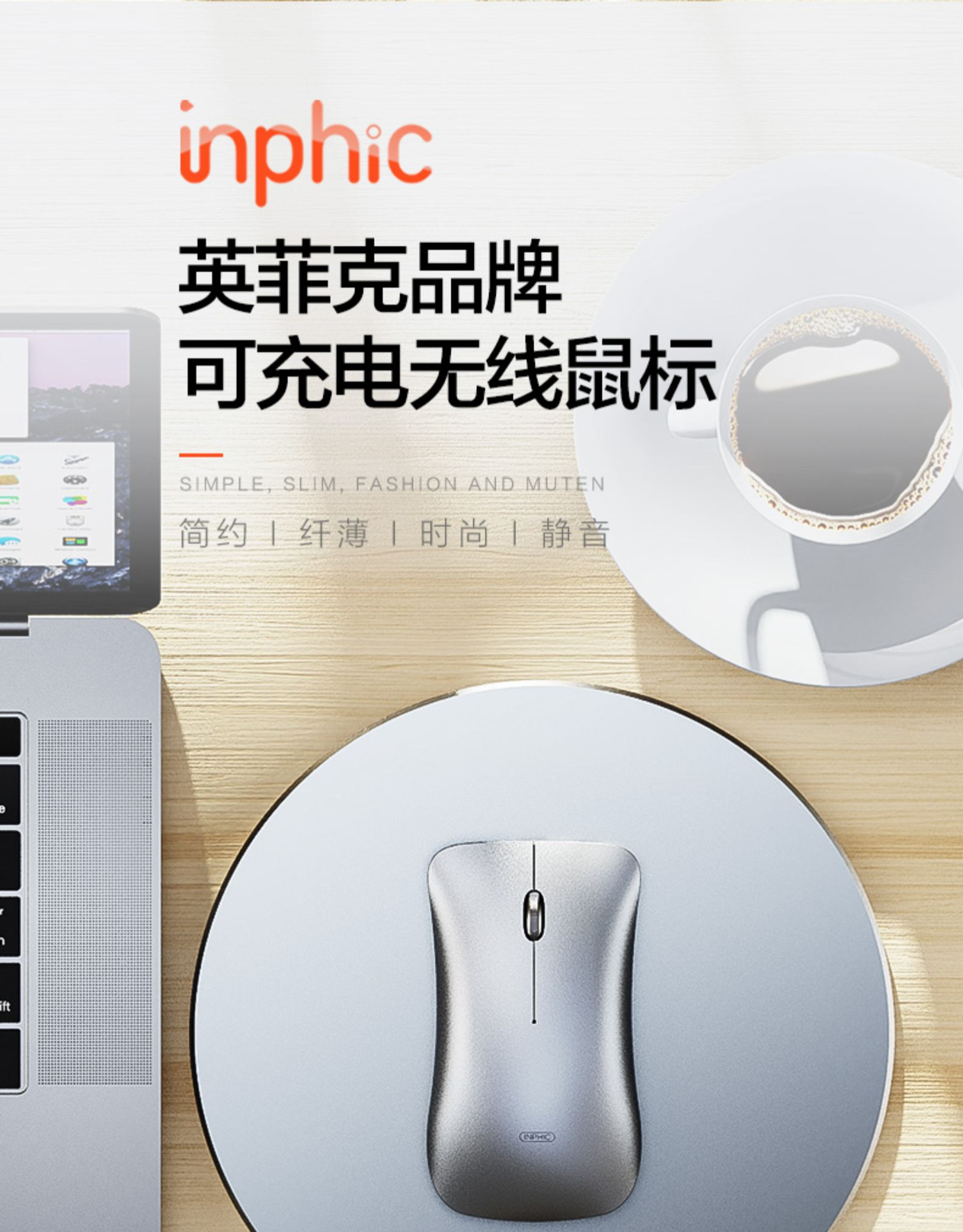 这款英菲克可充电式静音金属无线鼠标,优质铝合金CNC工艺一体化质感,配合人体工学设计,握感舒适,静音微动按键,配合精密铝合金滚轮,声音很小。2.4GHZ无线传输技术,10米轻松连接,1000/1200/1600 3档DPI调节。