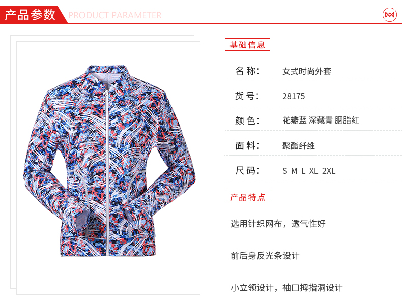这款地球科学家 女春夏款立领反光针织外套,适合运动时穿,选用针织网布面料,透气性非常好。修身版型,小立领,前后身还有反光条设计,夜跑更安全,袖口有拇指洞设计,不会让袖口影响运动舒适度。