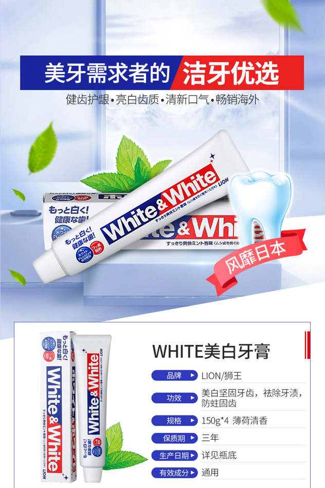 天猫LION官方海外旗舰店89.9元,可领40元优惠券,实付49.9元到手。规格是150g*4支,合12.3元/支。这款狮王 美白牙膏,日本原装进口,泡沫丰富,有美白坚固牙齿,祛除牙渍,防蛀固齿的功效,清爽薄荷香气,清新口气无异味;