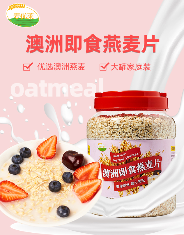 精选澳洲阳光燕麦燕麦经过精细加工,食用更加方便,口感也得到改善。富含膳食纤维和蛋白质,属于低热食品,食后易引起饱感,长期食用具有减肥功效。此外,燕麦中含有丰富的维生素B1、B2、E、叶酸等,可以改善血液循环、缓解生活工作带来的压力。