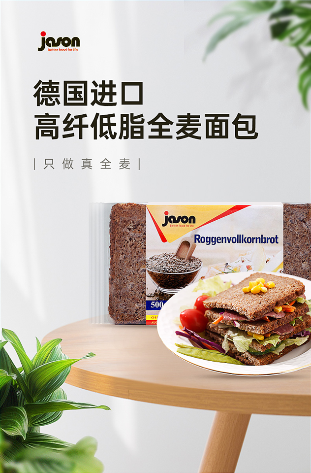 多口味可选,历史新低。德国进口,捷森无蔗糖全麦粗粮面包!坚持只做真全麦,无蔗糖无油,更糙,更燥~独立包装,更方便!入口绵实,营养又健康,饱腹感更强!