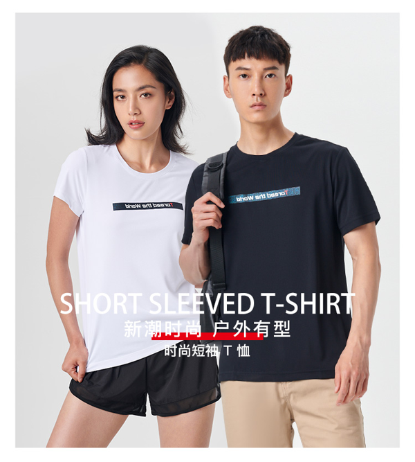 这款探路速干T恤,使用棉感平纹面料—100%聚酯纤维,摸起来手感接近纯棉,穿着更舒适。功能上吸湿排汗,速干透气,适用于夏季或运动时穿。