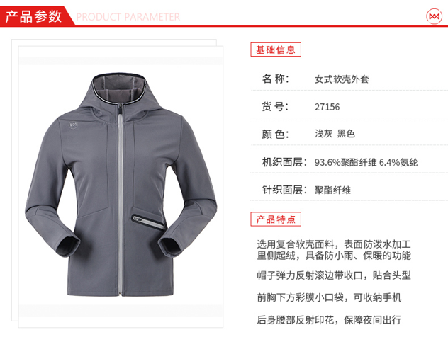 软壳相比于硬壳,软壳具有良好的透气性,伸展舒适性,虽没硬壳那么强的防水功能,但普通的小雨和泼水也基本无惧,应用场景更广泛,适合日常穿着,是一款适合春秋冬三季穿的多功能外套。
