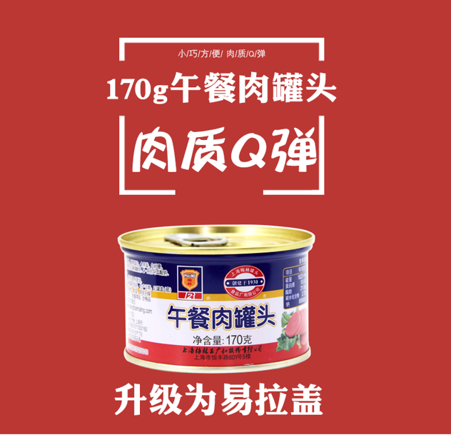 天猫梅林绵阳专卖店76元,可领20元优惠券,实付56元到手,170g*8罐装,小降7元。这款午餐肉罐头是一代人小时候的回忆,百吃不厌。午餐肉色泽红润、香味浓郁、富有弹性,可以用来炒菜和烧烤。