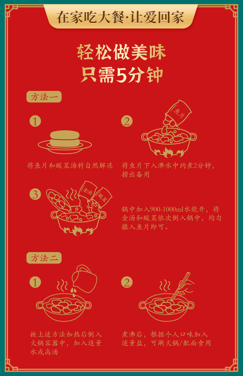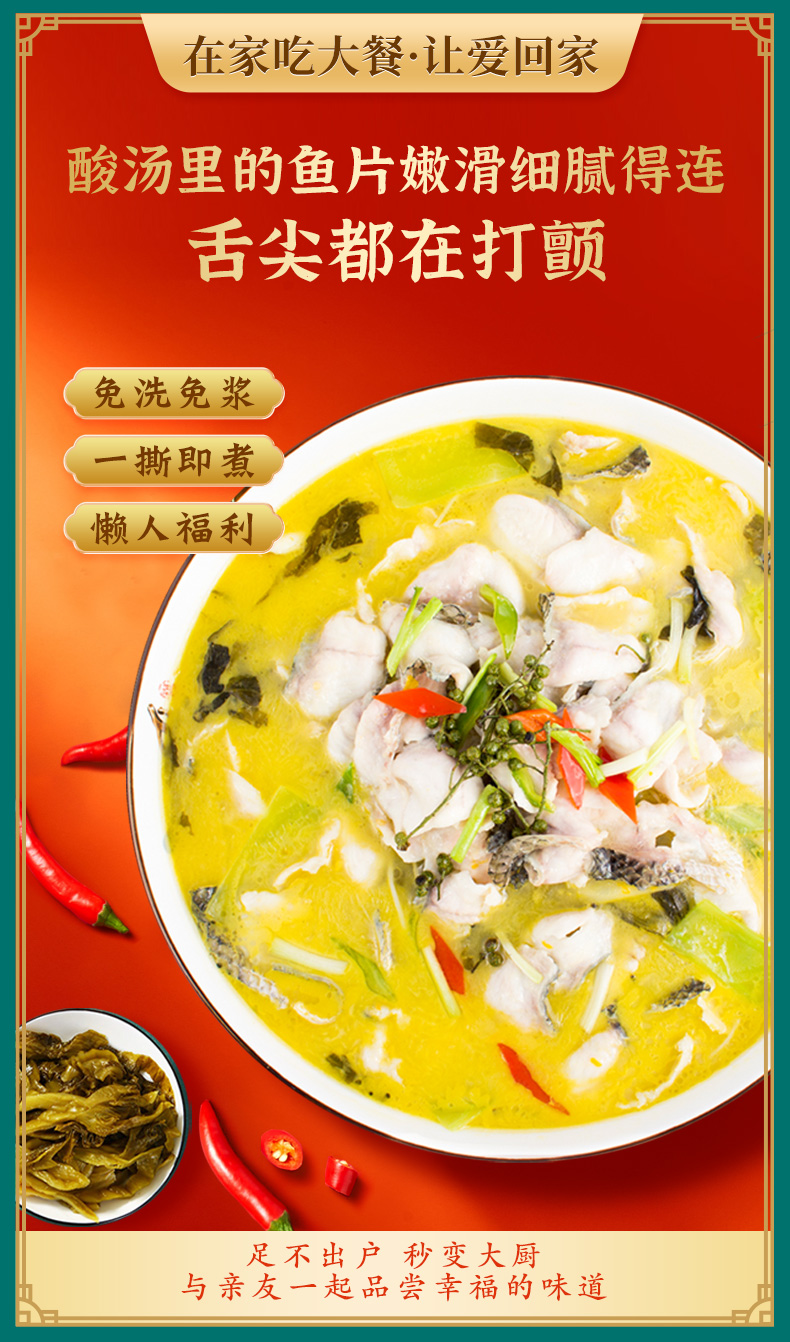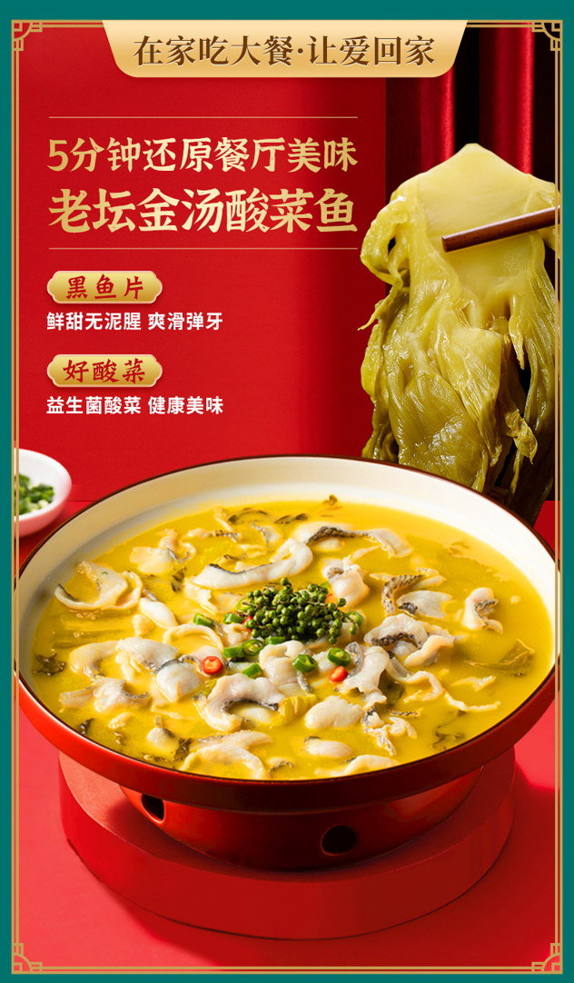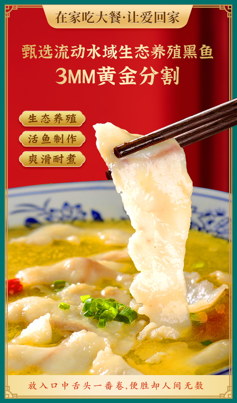 中国渔业协会副会长单位出品,甄选新鲜黑鱼加工,免洗免浆、锁鲜工艺还原活鱼口感,鱼片细嫩丝滑,在配上秘制益生菌老坛酸菜、在配上文火慢熬浓郁金汤,滋味醇厚、鲜美不腻。加热即食,5分钟还原餐厅美味。