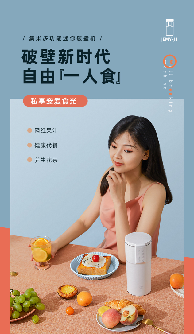 高颜值新款mini魔食杯,小巧不占地,随身携带非常方便。集榨汁、煮茶、破壁、豆浆,辅食,烧水多功于一身,一机多用。配置强力电机、四叶立体刀片、内胆多筋立体扰流,破壁细腻均匀,免过滤;7小时智能预约,完成后自动保温2小时,睡前设置,早起即可享用,带有一键清洗功能,300ML容量可满足1-2人使用。