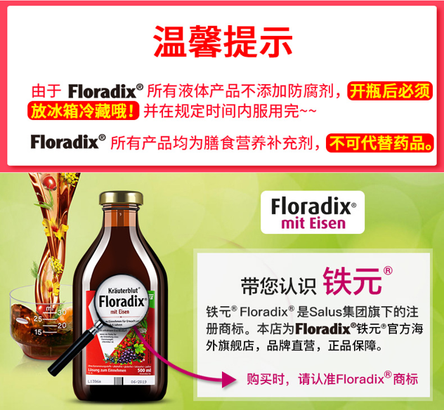 这款莎露斯 Salus 铁元 红瓶升级版,主要成分是胡萝卜、菠菜、海带、梨、葡萄、黑加仑、樱桃、橙子、红甜菜、柠檬、长豆角、苹果、水、蜂蜜,含有维生素C、维生素B1、维生素B2、维生素B6、维生素B12等营养元素,可增强人体的造血功能,改善气血不足,脸色苍白,手脚冰凉,易疲劳,免疫力下降等缺铁症状,是补血的首选佳品。