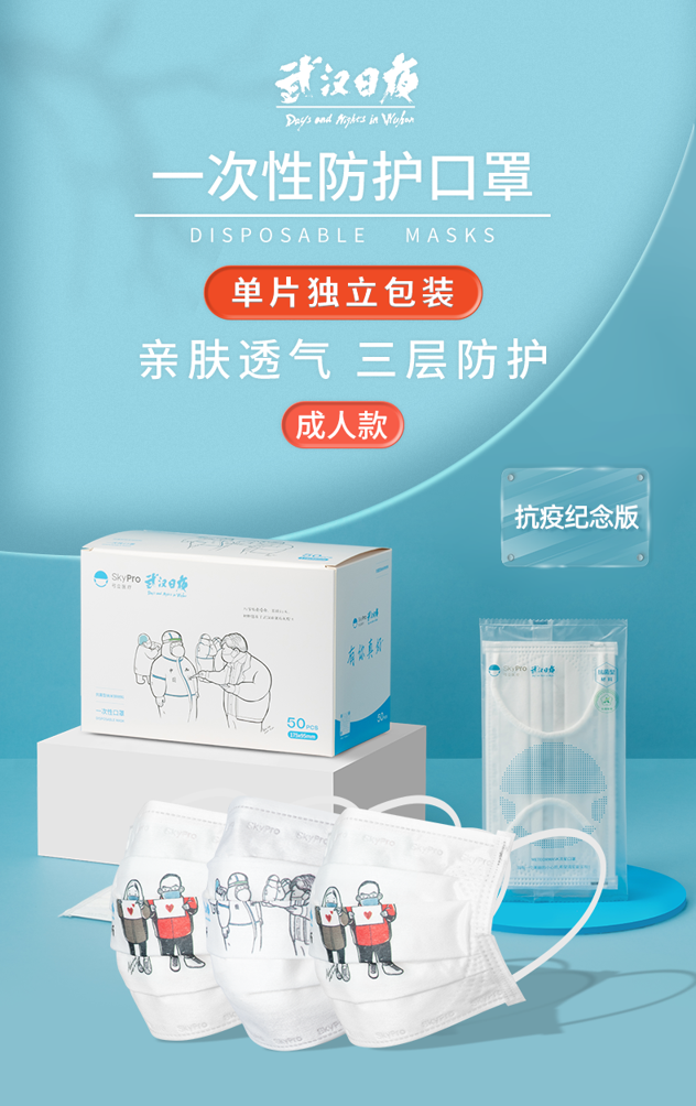 创新的纪念印花,口罩也不再单调,采用吸湿透气无纺布、熔喷布过滤层和拒水pd无纺布3层结构,4D立体结构更贴合脸型,细菌过滤效率达98.7%,出厂前还使用环氧乙烷灭菌,是一款防护非常严谨的一次性口罩。