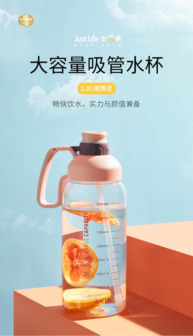 赵露思推荐!【赠杯刷1个+杯贴1张哦】1800ml大容量畅饮水杯,进口tritan奶瓶材质,健康安全。直饮式吸管,安全小口,贴合唇部,防止水源污染。健身运动必备,实力与颜值兼备哦!