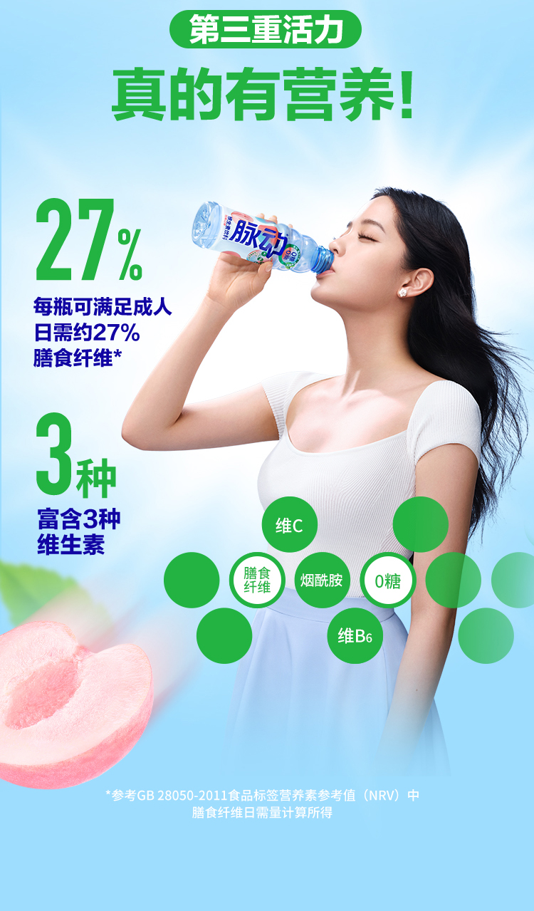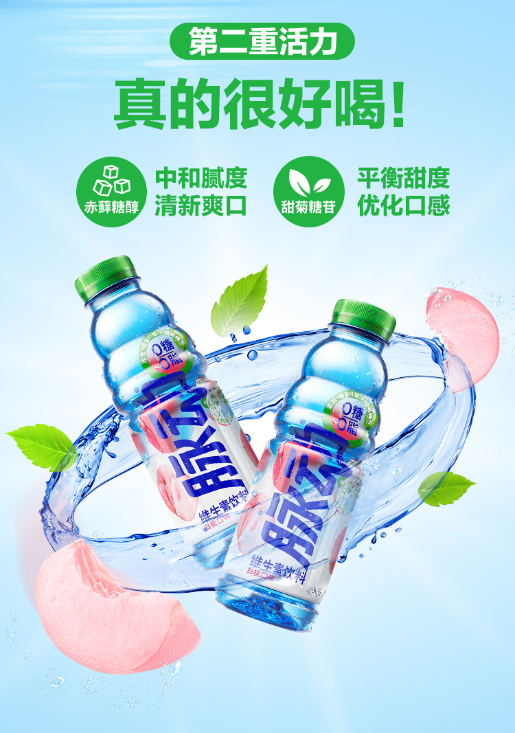 这款脉动白桃口味维生素饮料是新品,使用赤藓糖醇和甜菊糖苷代替蔗糖,0糖0脂0卡,好喝不胖,还还有各种维生素成分,补充运动后的身体所需。