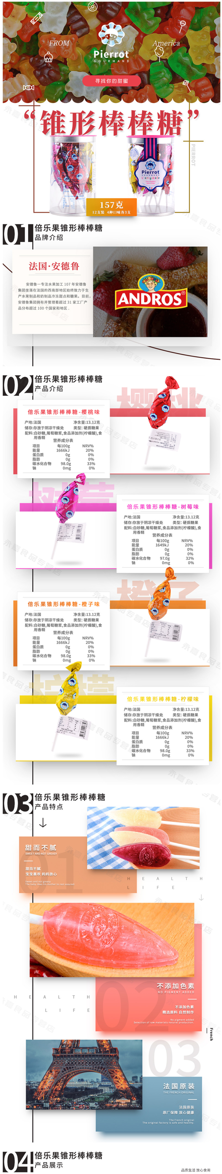 倍乐果是一个拥有超过120年历史的法国糖果品牌,同时也是棒棒糖的发明者,1976年被法国食品集团安德鲁收购,拥有完善的质量控制体系,符合国际食品标准。