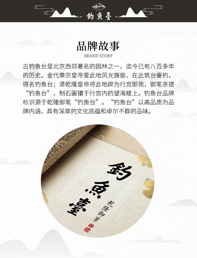 钓鱼台因为这个金字招牌,品牌由乾隆御笔,同时还是贵州茅台镇生产的酱香白酒,一直都是商务招待上的常客,“稳坐钓鱼台”这个含义招待也非常好。