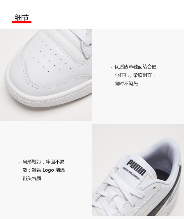 这款彪马Puma男女复古经典休闲鞋,是2021年新款,鞋身使用优质头层牛皮革和二层牛皮革拼接制成,柔软耐穿,鞋头还有透气孔,内外通气不闷热。柔软鞋垫,穿着舒适不生硬。