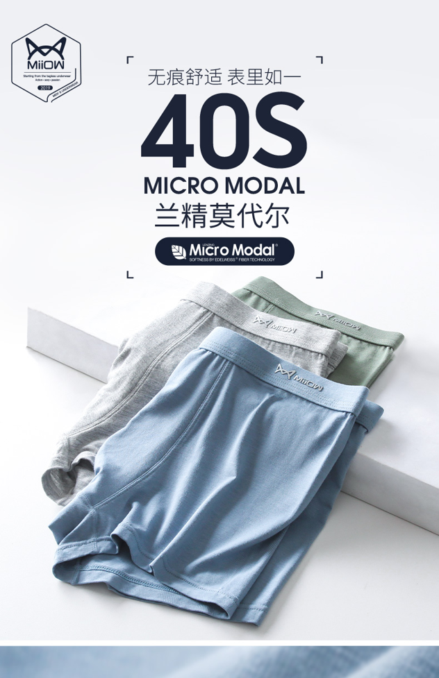天猫猫人服饰旗舰店55.9元,可领30元优惠券,实付25.9元到手,精梳棉款同价。莫代尔材质内裤和纯棉面料相比,莫代尔手感更柔,吸湿更快更干爽,连续穿几天也没有棉质内裤松懈。莫代尔面料要混入氨纶弹力纤维,拥有弹力贴身的穿着感,又不会像尼龙或聚酯纤维有明显的紧绷感。