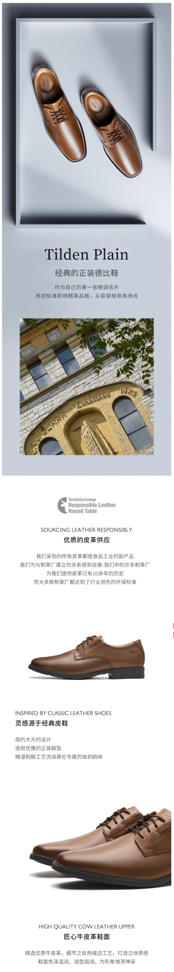 这款其乐Clarks Tilden Plain 男鞋,是一双适合正式场合穿的商务德比鞋,2018年的秋冬专柜新款,加宽楦型,脚肥的也能穿。泰顿四孔系带,鞋面是以柔韧的牛皮革为原料塑成,造型挺括、皮质均匀细腻,完整保留了皮料的自然光泽度;