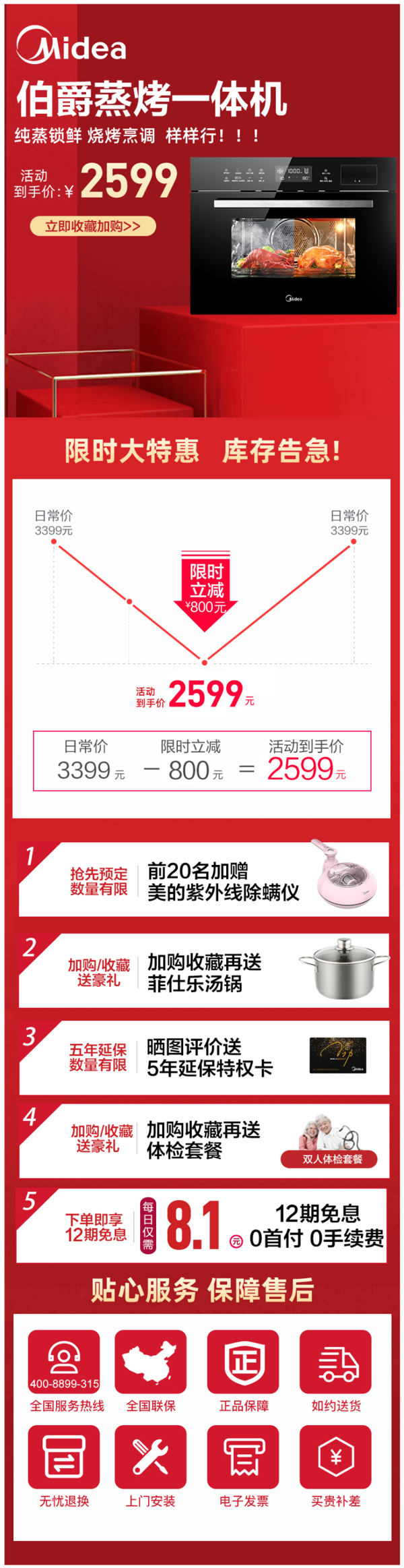 美的 TQN34FBJ-SA嵌入式蒸烤一体机,嵌入式与橱柜合二为一,更节省厨房宝贵的空间,采用全玻璃触控面板,易清洁耐刮伤,下拉门可以成90度角,可以作为料理台使用,可一键弹出水盒,具备缺水提醒,还有童锁功能保证孩子安全。
