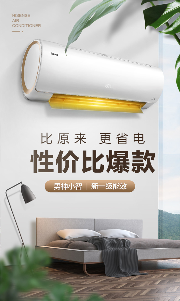 这款海信EF20变频空调,大1.5匹,新一级能效,使用高效压缩机和直流风扇电机,上下左右导风板自动摆动,立体送风,柔和舒适,快速全屋升温/降温。
